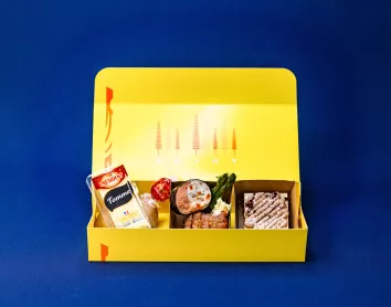 すべての中距離路線では、アラカルトメニュー(日本メニュー*を除く)をランチボックスでお召し上がりいただけます。アラカルトメニューと同じ味をトレイでお召し上がりいただけます。このランチボックスは、リサイクル可能な紙を一部使用しており、機内ではリサイクル可能なもの、またはリサイクルされたものをご利用いただけます。
